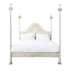 A spectacular four-poster Roma Bed Frame by Porte Italia Interiors Srl, handcrafted in Italy. The frame features elegant finial posts and is finished in Argento (silver-leaf effect), applied using traditional Eighteenth-Century Venetian Techniques. This customizable piece combines romantic, timeless elegance with a whimsical, hand-painted aesthetic. (See image colour swatch for Argento finish).I am captivated by the sheer artistry and romanticism of this piece. It is the ultimate statement of curated luxury, transforming a bedroom into a personal sanctuary. The use of ancient Venetian techniques on such a commanding piece of furniture elevates it beyond mere utility into an Architectural Element of pure decorative joy. We see this as a foundational piece for installing a narrative of whimsical elegance and enduring Italian craftsmanship.Manufacturer: Porte Italia Interiors Srl Model: Roma Bed Frame (RC.23119) Style: 18th-Century Venetian Hand-Painted Finish: Argento (Silver-leaf effect) Dimensions (H x W x D): 248 cm x 182 cm x 233 cm Condition: New / Excellent (As per original source)PORTE ITALIA: Roma Bed Frame (Bamboo Finish)Porte Italia Interiors Srl, Whimsical / Chinoiserie StyleHand-Painted Porte Italia Bamboo Roma Bed, White with Apple Green and Butterfly Detailing.A whimsical four-poster bed from Porte Italia, referred to as the Bamboo Roma Bed. The frame is hand-painted in white with a motif of apple green bamboo, delicate ferns, and butterflies. This customizable statement piece combines romance with timeless elegance and is designed to bring joy to any bedroom.
