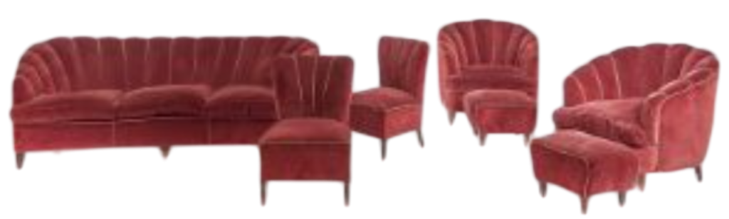 Extremely rare and historically significant full living room set designed by the master Gio Ponti for the seminal magazine Casa e Giardino.